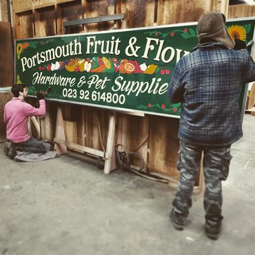 Nigel and Jack are Signwriters based out of Portsmouth, United Kingdom. We are a father and son business that travels nationwide to provide handmade, and hand painted signs, artwork, and commercial decoration for homes and business' big and small.